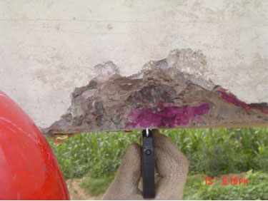 采用混凝土回弹仪检测拱片、拱腿混凝土强度,均能达到设计强度C30要求,混凝土碳化深度为1.0-2.5mm。