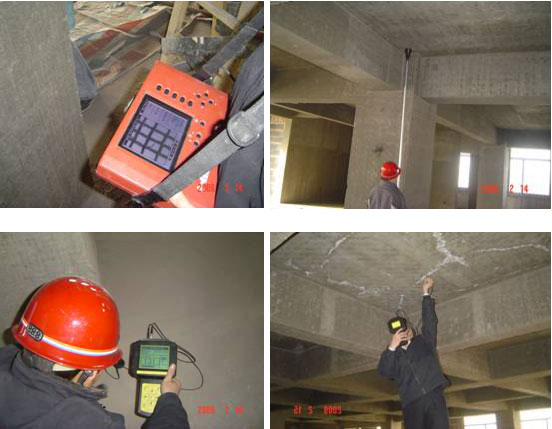 ① 此建筑物的混凝土强度及碳化深度测试实验及楼板厚度的测量。