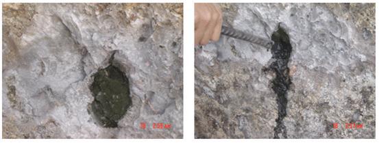 1)、对已腐蚀破坏的结构混凝土沿裂缝周围进行剔除,排除残留在空洞内的酸性液体用同直径钢筋修复已锈蚀的钢筋。