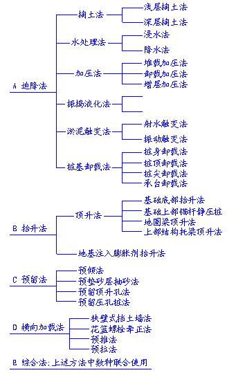 顶升法:适用于上部结构荷载较小、不均匀沉降较大以及特殊工程地质条件;