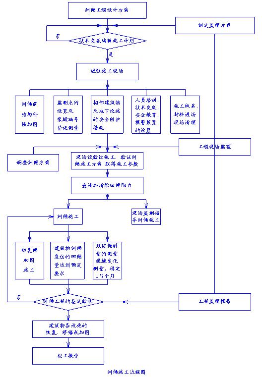l射水顺序与周期。两眼辐射井同时射水,第一次射水按间跳射水孔进行,即先按单号射水孔射水,待两眼井的单号射水孔全部达到设计深度后再施工双号射水孔。射水周期要与回倾速率密切结合,烟囱的最初回倾速率控制在 30mm /d,在射水及回倾进入规律阶段后,回倾速率控制在 50mm /d。当烟囱的回倾数值与纠倾达标数值相差接近 100mm 时,放慢射水频率与强度。当回倾数值与达标数值相差 100mm 时,暂停射水观察一周,再根据回倾稳定状况,调整射水强度,直至达到规范标准值。