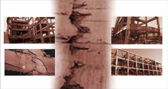 建筑经受高温辐射,构件表层严重碳化。钢筋和砼弹性模量不同,膨胀变形界面错位,引起剪切应力下降,造成安全隐患。务必突破传统束缚、改变传力途径、微观划区分析、宏观体外补强、增设过渡措施。