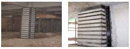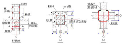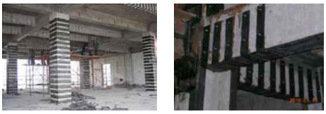 苏州木渎广场坐落于苏福路两侧,由于地基沉降导致地下室地板上浮拱起,造成框架梁、墙出现不同程度的裂缝,柱顶及梁墙节点出现不同程度损害,需要对其相应部位进行加固处理。主要加固方案是:框架柱外包钢、框架梁底粘钢、粘贴纤维布、柱、梁、墙及底板裂缝修补、梁柱混凝土酥裂剥落处理。