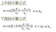 混凝土材料的本构关系曲线由上升段和下降段组成,计算采用的应力- 应变曲线表达式为