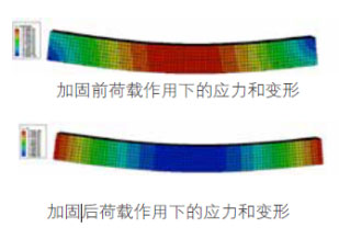计算结果表明,在荷载作用下,加固后梁的强度挠度明显变小,较加固前减少挠度1/320,承载力提高约30%,可以满足现行设计规范要求。
