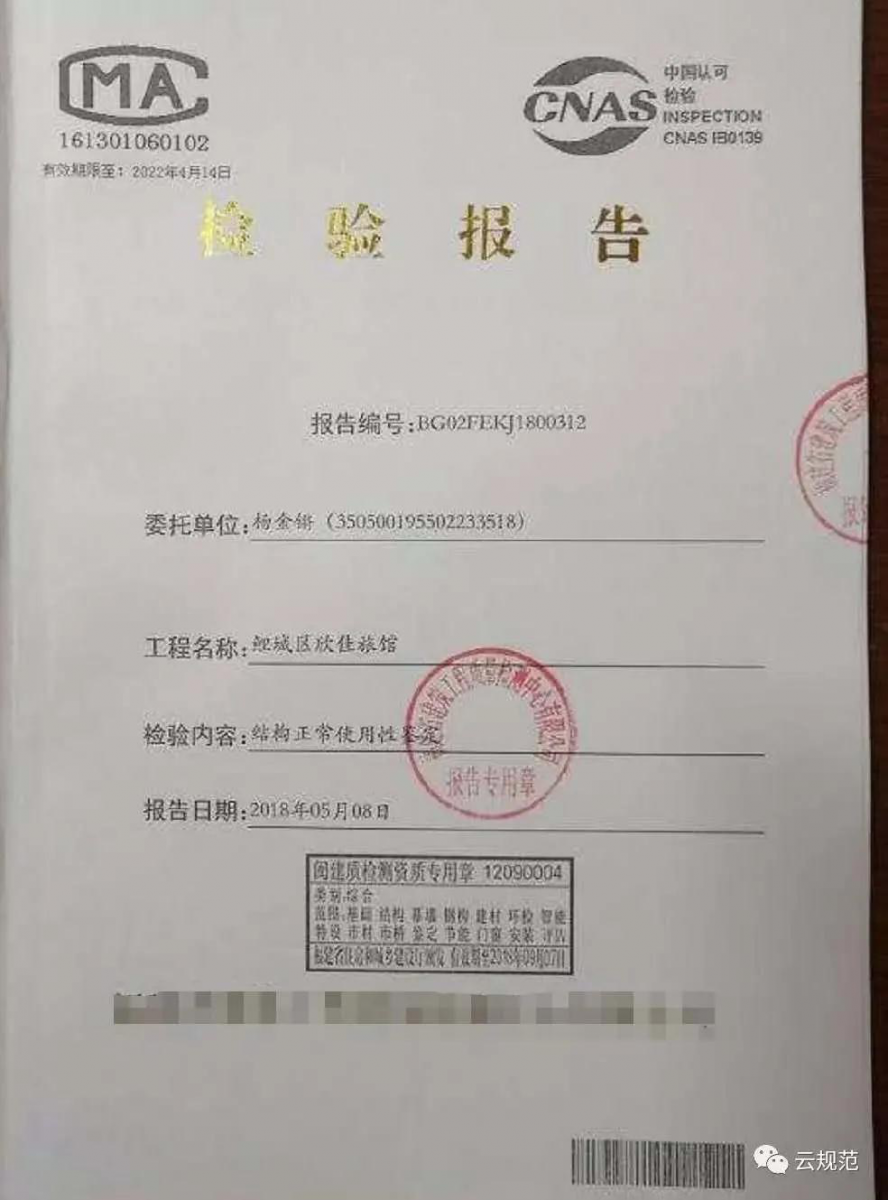 从时间上看,这份《检验报告》的出具日期为2018年5月8日。此前的2018年3月28日,欣佳酒店成立;此后的6月,欣佳酒店正式开业。(2)